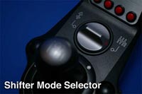 In addition to a six-speed "H" pattern shifter with reverse, the shifter can be placed into a mode where it behaves as an up/down "slap" shifter - as used in some contemporary GT racing cars. In this mode, return springs hold the shifter in a central position, and the user pushes the lever forward and rearward against these springs to perform sequential up- and down-shifts. This generally works well, but if the user inadvertently compresses the shift lever (designed to do this for the reverse feature) while performing an up- or down-shift, the lever will occasionally slip from the spring return into one of the "H" pattern gates and remain there until the user pulls it up and back into the up/down pattern. When driving rally simulations such as Richard Burns Rally, I configure the shifter in this spring mode to behave as a handbrake (though I have plans to build a proportional handbrake controller rather than this on/off solution).
