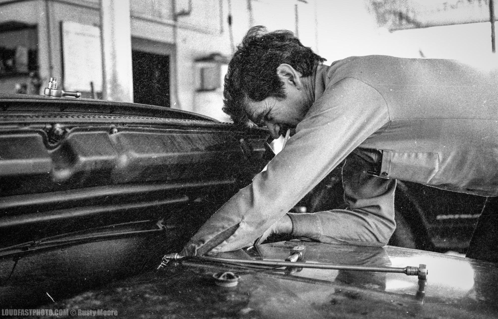 I don’t know what we talked about, but we must have talked a lot. In addition to the late night conversations, I’d join Bill for lunch at Ham’s Restaurant across the street two or three days a week and order the same Hot Italian Sub as he, along with Ham’s great thick-cut steak fries and relish tray with dill pickles, macaroni and potato salad. In time, a few of my friends joined in the socializing. Bill would work away by himself, and our little gang of car nerds would stand around uselessly and listen to and laugh at his stories and absorb his wisdom.